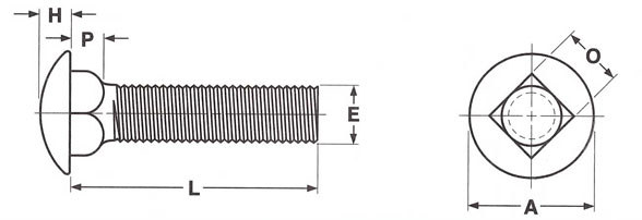 Body Diameter | Head Diameter | Head Height | Square Width | Square Depth | |||||||