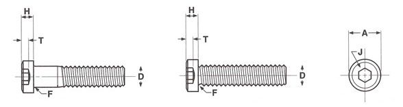 Nominal Size | D | A | H | J | T | F | Tensile Strength Pounds Min. | Tightening Torque Inch Pounds | ||||
